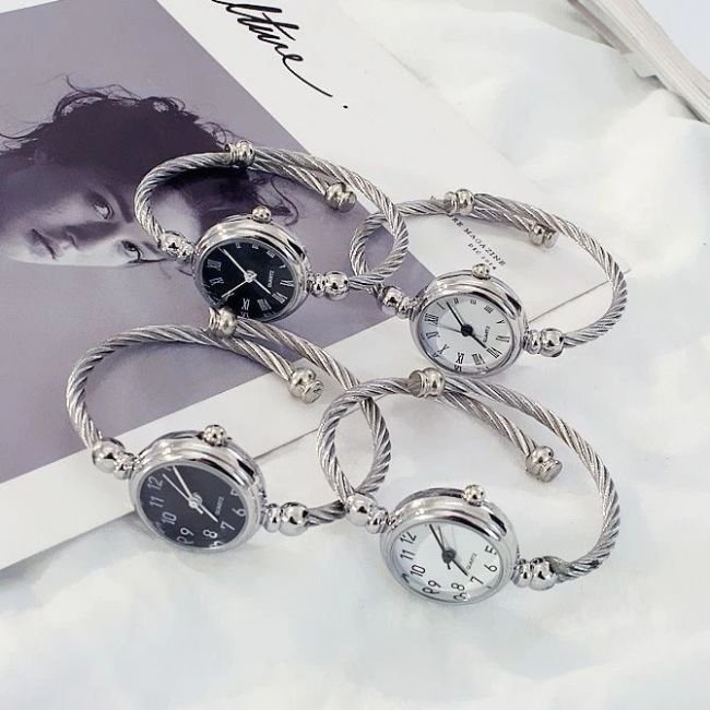 Thiết kế tinh tế với mặt đồng hồ nhỏ gọn, dây hợp kim bền đẹp, phong cách Hàn Quốc.